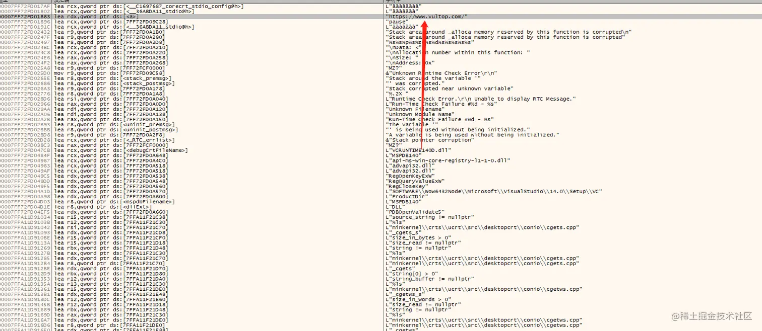 可以看到我们打印的字符串,双击过去,到了我们的主函数中打印函数这里: