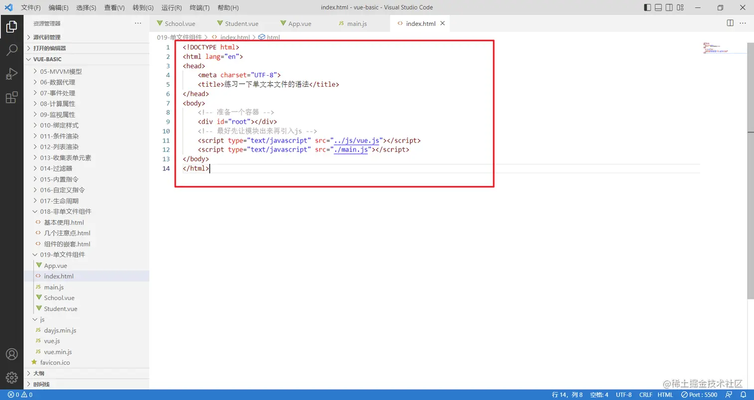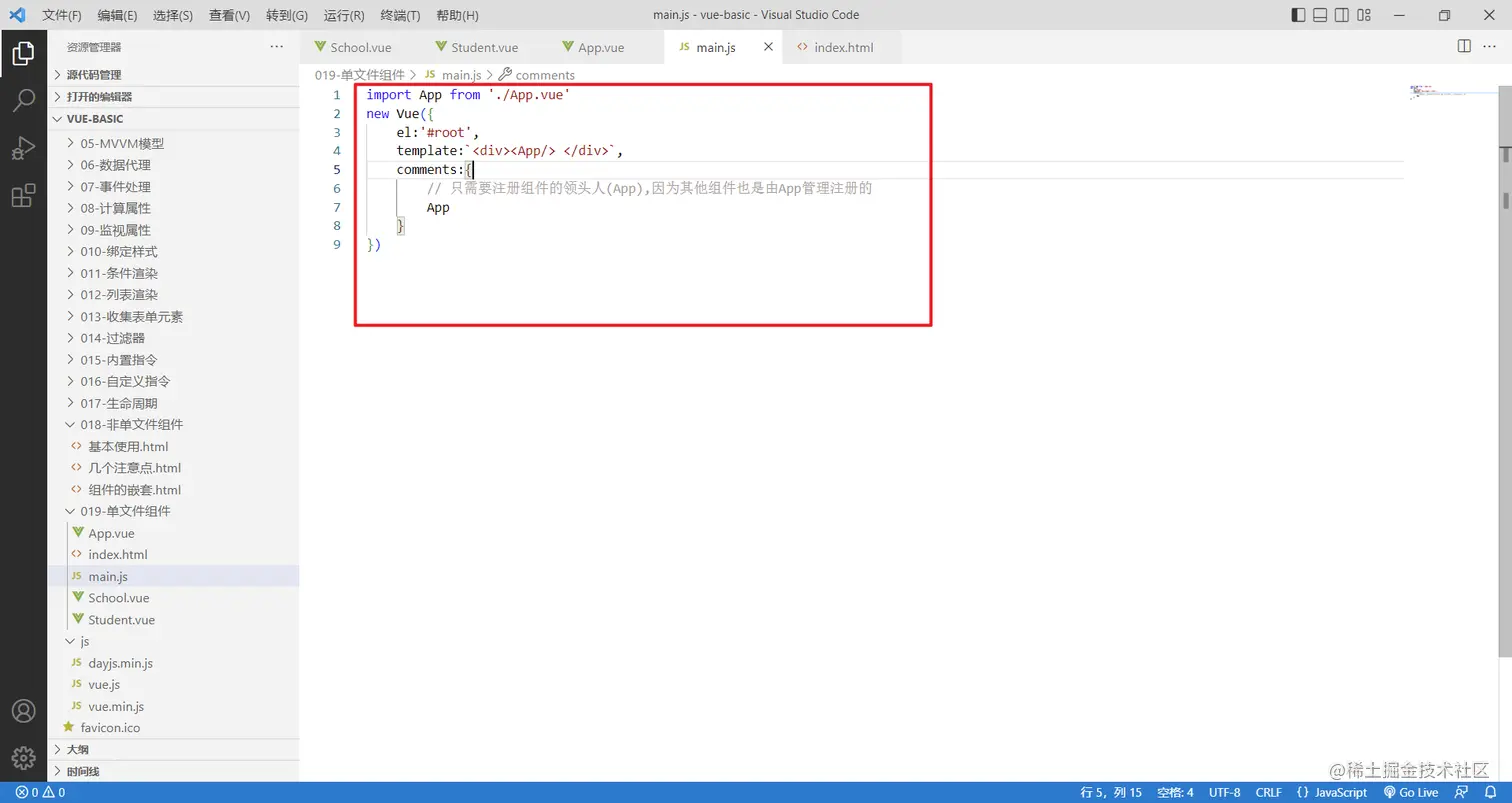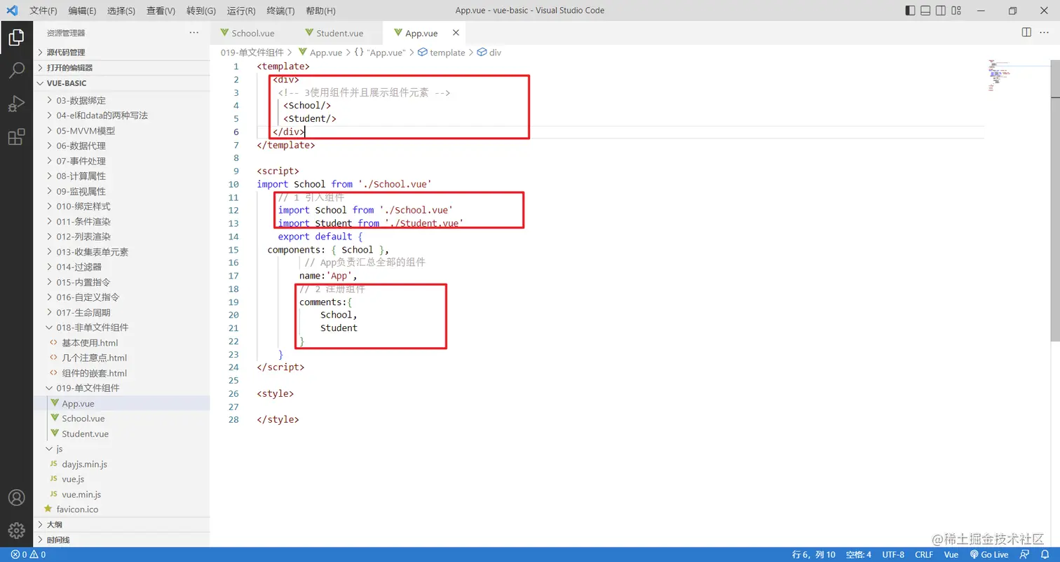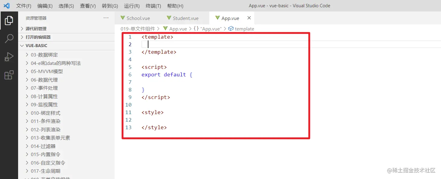 接下来就开始编写单文件组件了,首先创建一个学校组件(School.vue)