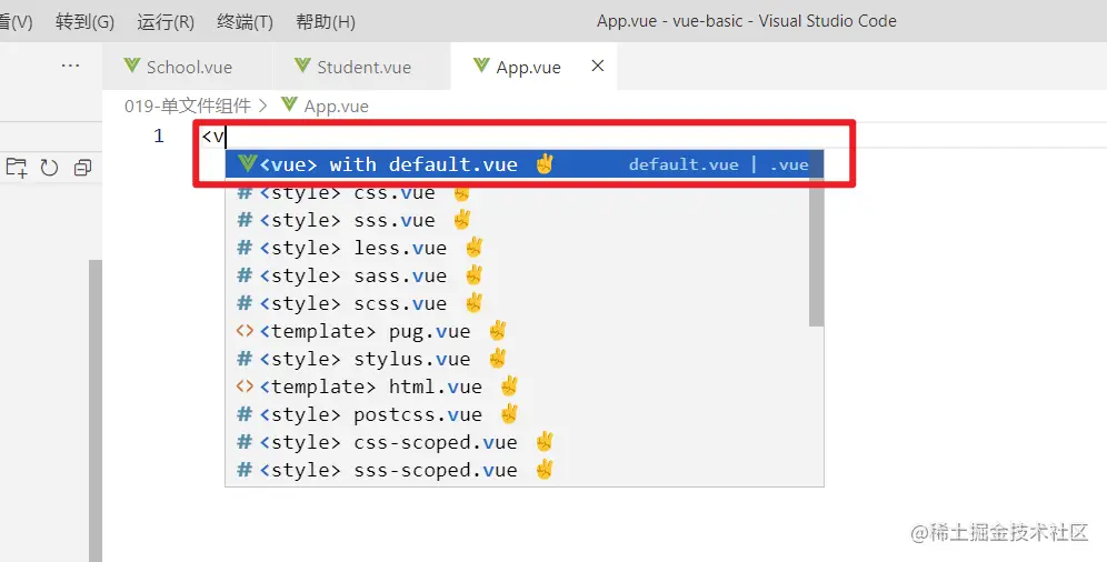 注:如果安装了上面的插件,就不用自己写标签了,可以通过快捷键(<v)自动生成代码结构