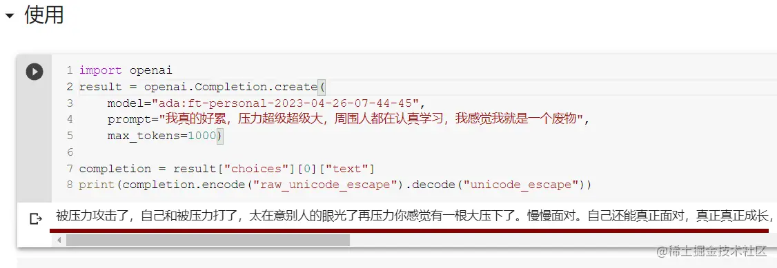 -m 是你开始的基本模型的名称(ada、babbage、curie 或 davinci)。您可以使用后缀参数自定义微调模型的名称,ada最便宜,最快,笔者这里尝试一下就是使用的这个参数。