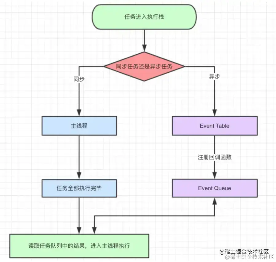 同步任务进入主线程,即主执行栈,异步任务进入任务队列,主线程内的任务执行完毕为空,会去任务队列读取对应的任务,推入主线程执行。上述过程的不断重复就事件循环。