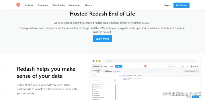 Redash 是一个基于云的开源数据可视化和分析工具,专注于理解用户数据。它提供与数据源的连接,用于通过构建仪表板和共享这些仪表板来查询数据和可视化该数据。