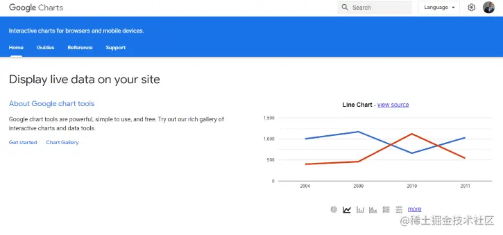 Google Charts 是一个纯粹的基于JavaScript的图表库,旨在通过添加交互式图表功能来增强Web应用程序。Google Charts提供了各种各样的图表。例如,折线图、样条图、面积图、条形图、饼图等。