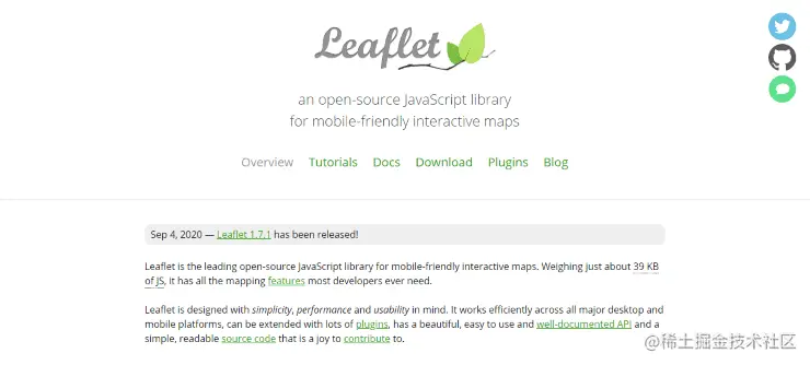 Leaflet 一个领先的用于移动友好交互式地图的开源 JavaScript 库,用于构建 Web 制图应用程序。可以使用它部署交互式、简单、轻量级和简单的 web 地图。支持大多数移动和桌面平台,支持HTML5和CSS3。