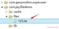 PS: 这里用的是模拟器,因为笔者的N5并没有root,看不到文件的存储目录,下面我们打开DDMS的File Exploer可以看到,在data/data/<包名>/file中有我们写入的文件: