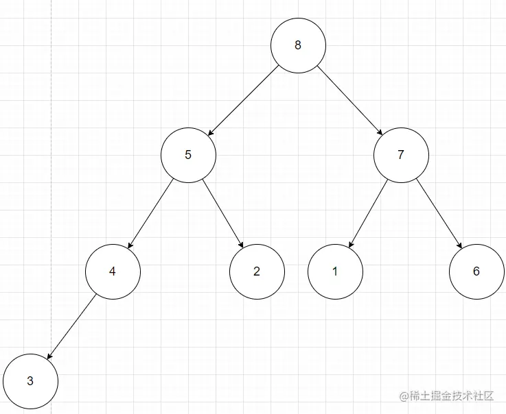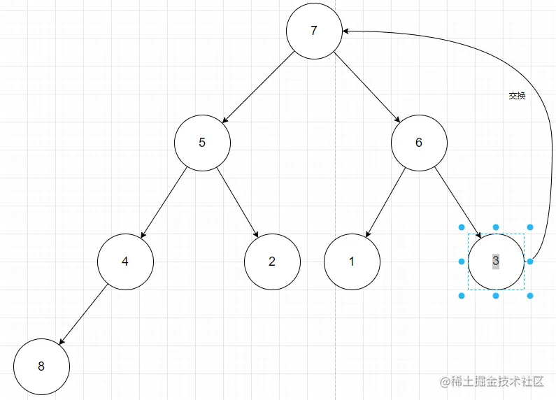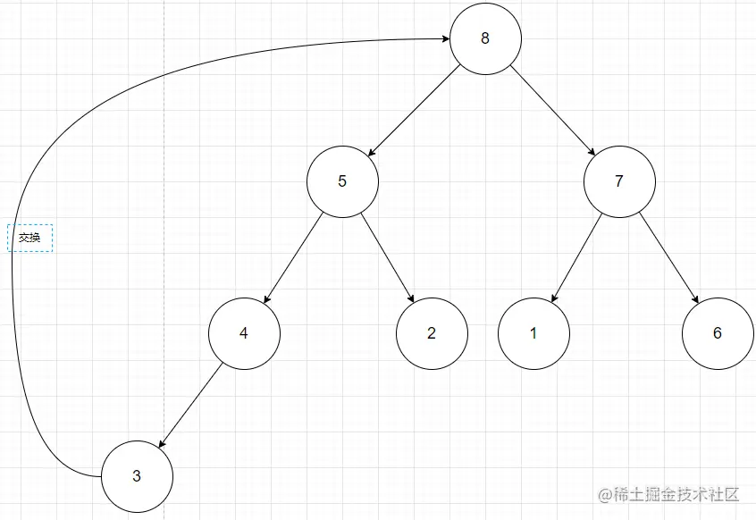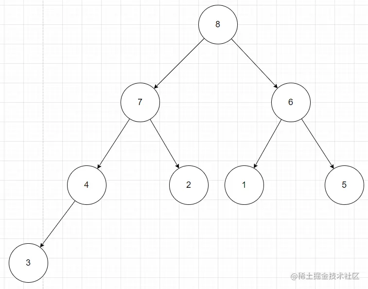 用数组[4,5,7,3,2,1,6,8]构建大根堆来举例