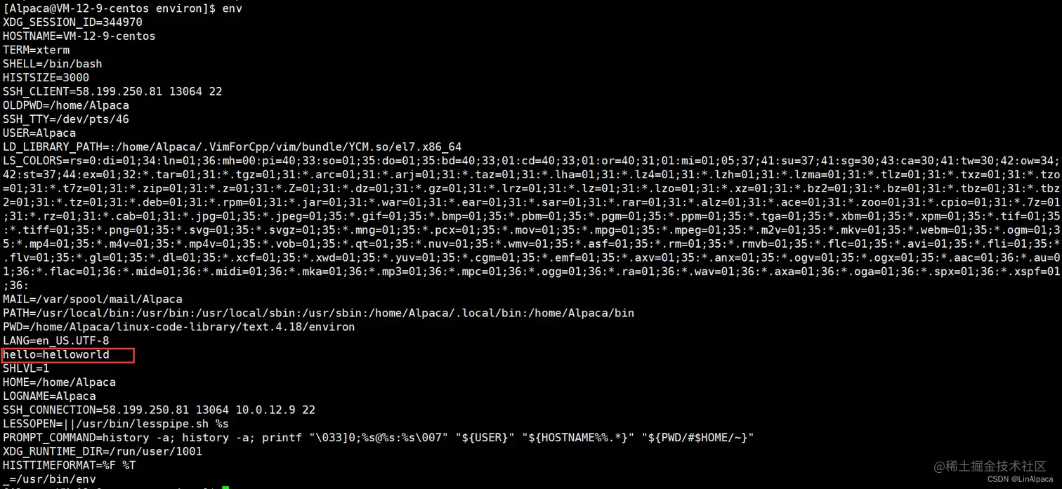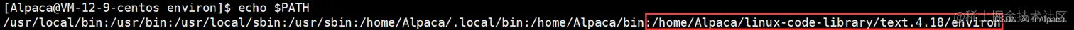 export PATH=/home/Alpaca/linux-code-library/text.4.18/environ (文件所在路径)