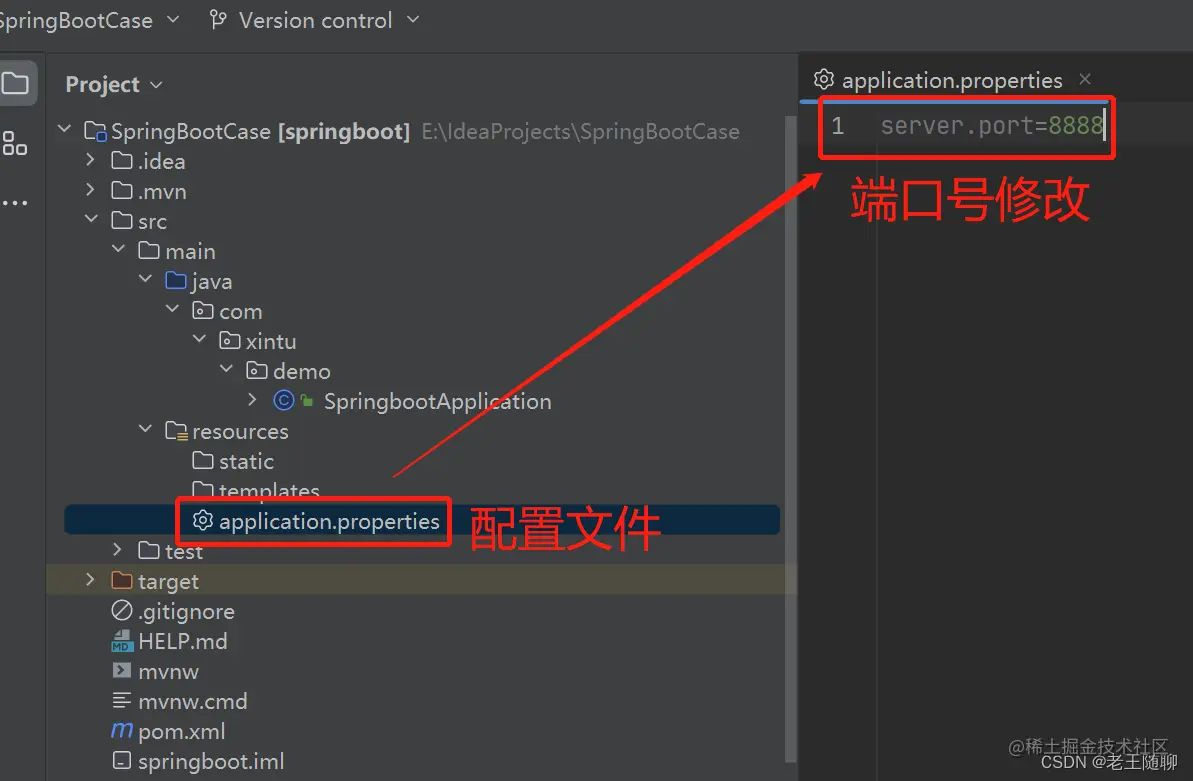1)由于springboot已经内置了tomcat。 如果不配置,默认服务端口为8080。我本地8080端口被其它应用占了,所以这里改为8888。