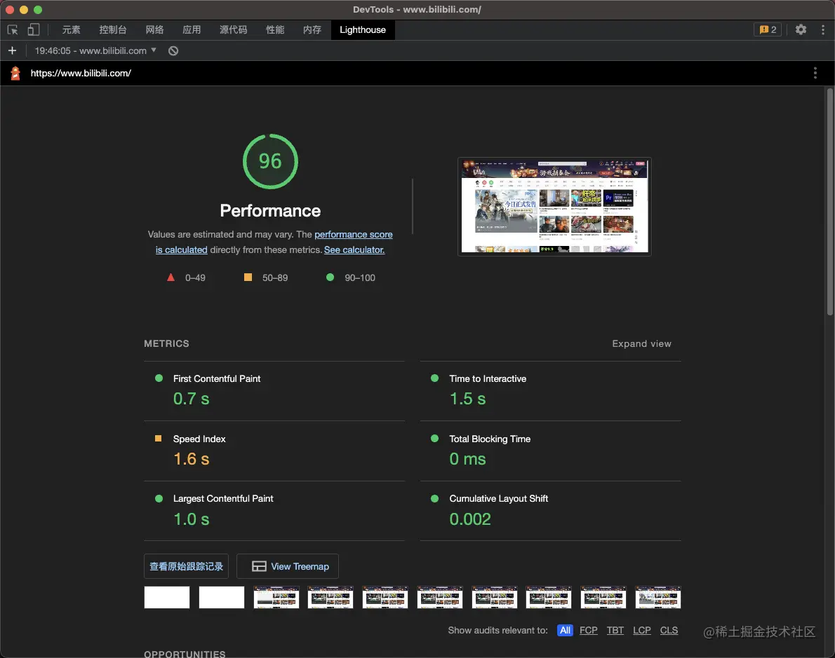 Lighthouse 会自动测试网站性能,并给出可读性强的报告。
