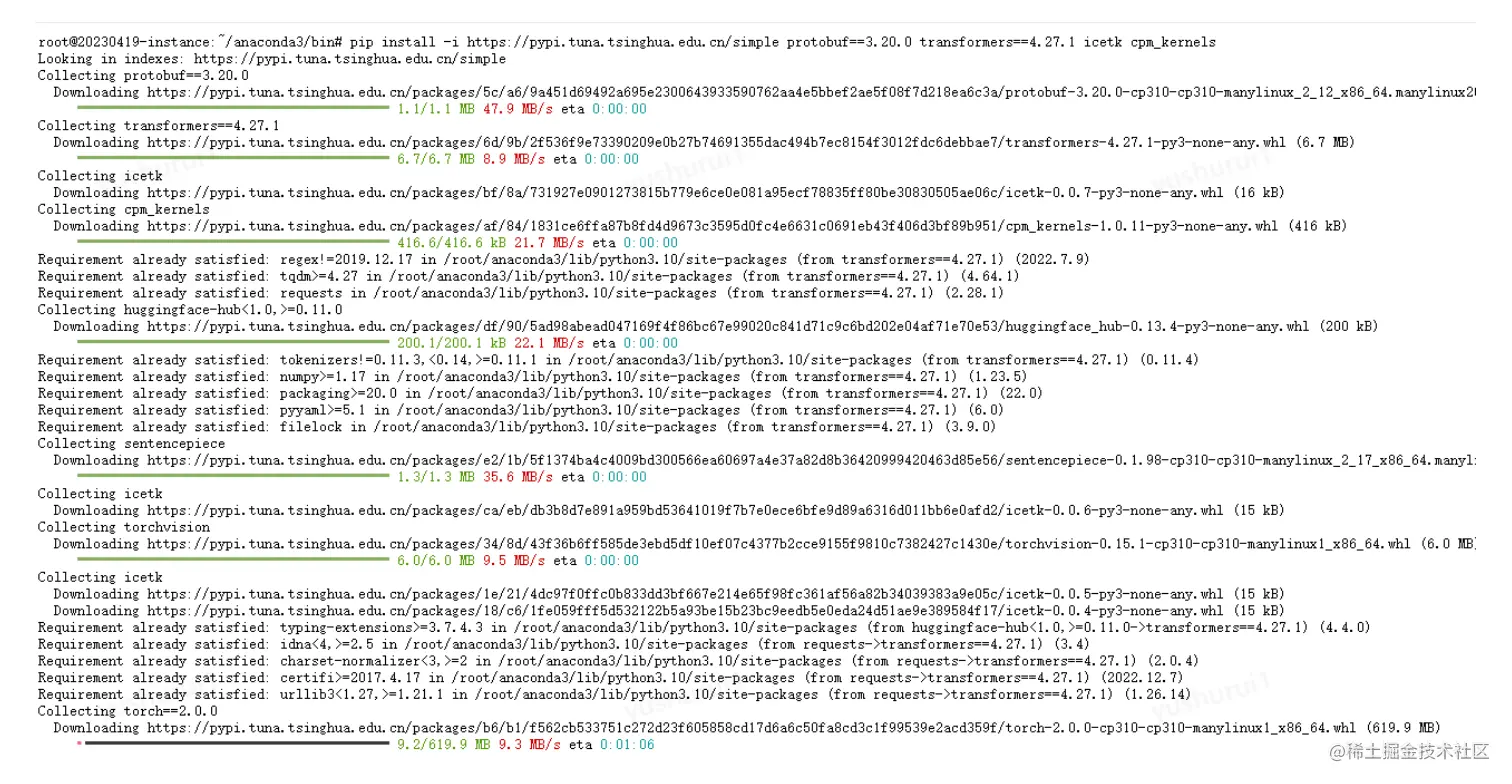 pip install protobuf==3.20.0 transformers==4.27.1 icetk cpm_kernels