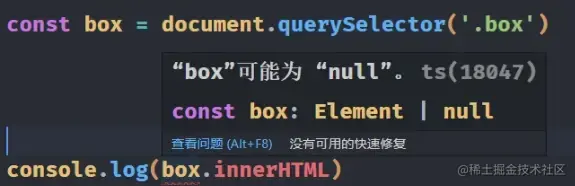 只是单纯的看你书写的 ts 代码, 那么他就会认为, 你有可能获取不到元素