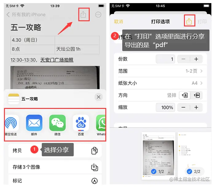 想要把备忘录导出pdf,下滑列表找到并点击**【打印】,在打印页面进行分享,导出的就是【pdf】**形式。