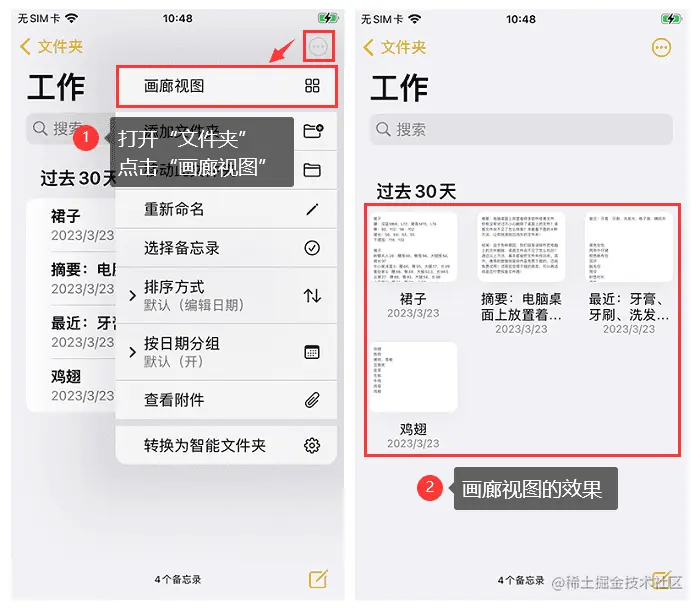除了**【列表视图】,我们还可以选择【画廊视图】**,切换备忘录不同的排列方式。
