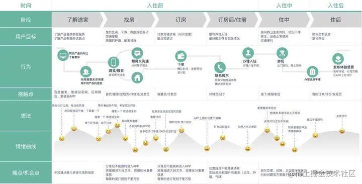 情绪:展示用户在旅程中特定阶段的典型情绪,有助于一目了然地看到各个阶段的实际反馈