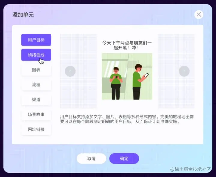 X-Map是针对个人用户推出的轻量化旅程工具,可以便捷制作出旅程地图。地图的场景、阶段可自由搭配,支持加入目标、图表、情绪曲线等多个维度。