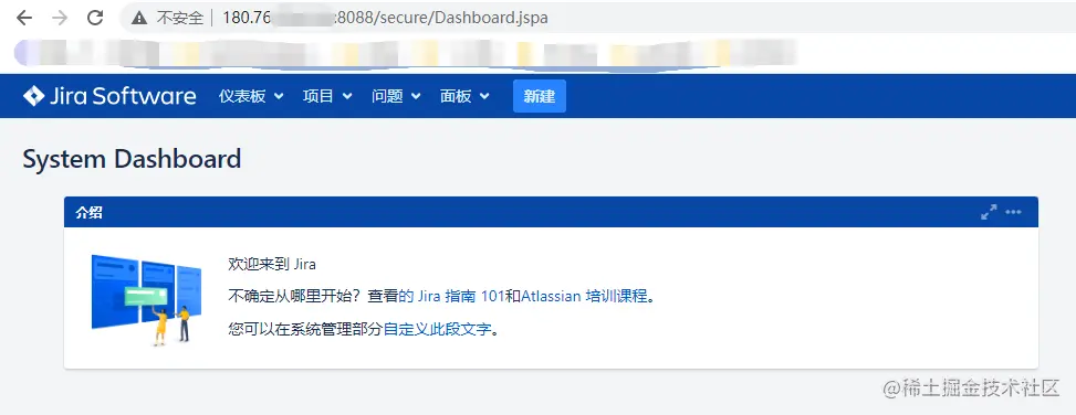 此时则可以通过公网IP+内网端口访问指定服务,如下图所示,访问的是内网服务器的jira服务。