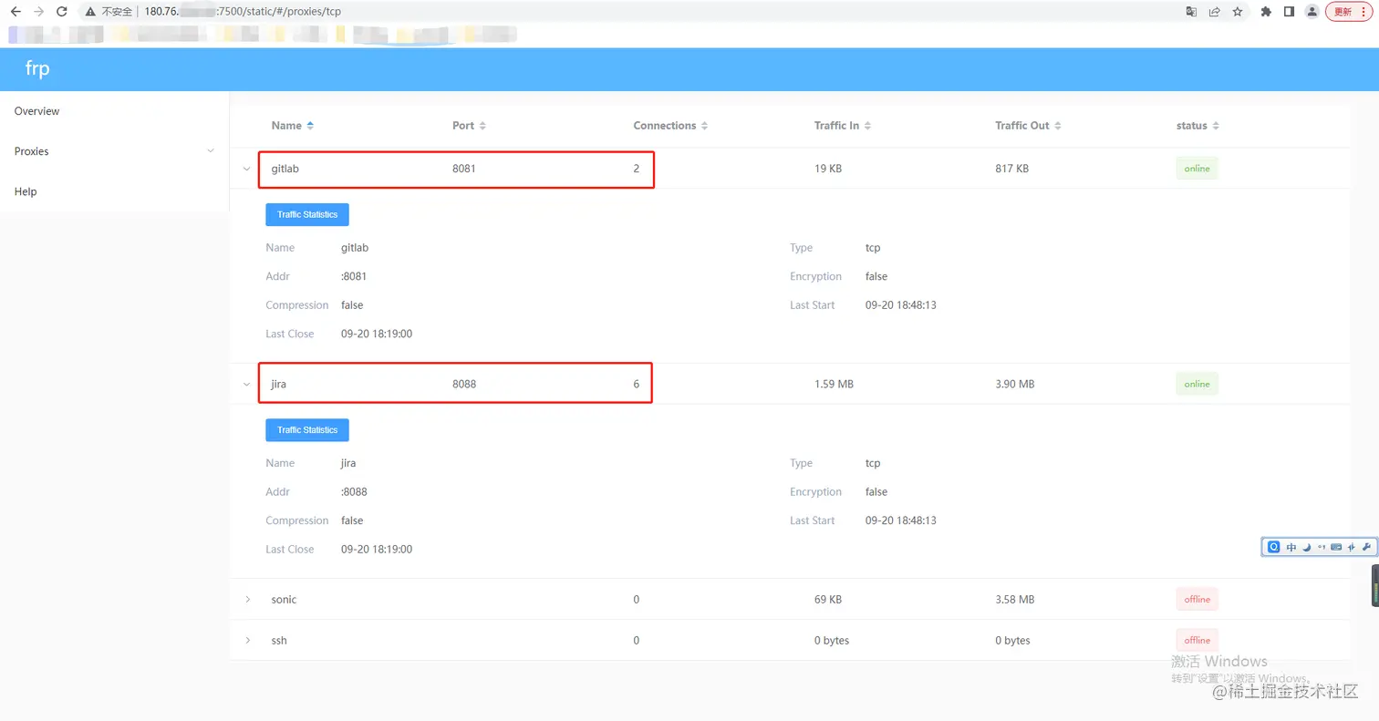 - 用户通过访问公网ip+端口号,公网服务器此时就相当于代理服务器,上面部署的frps服务端会根据端口号,自动转发到对应的内网服务器上,从而访问到内网服务;