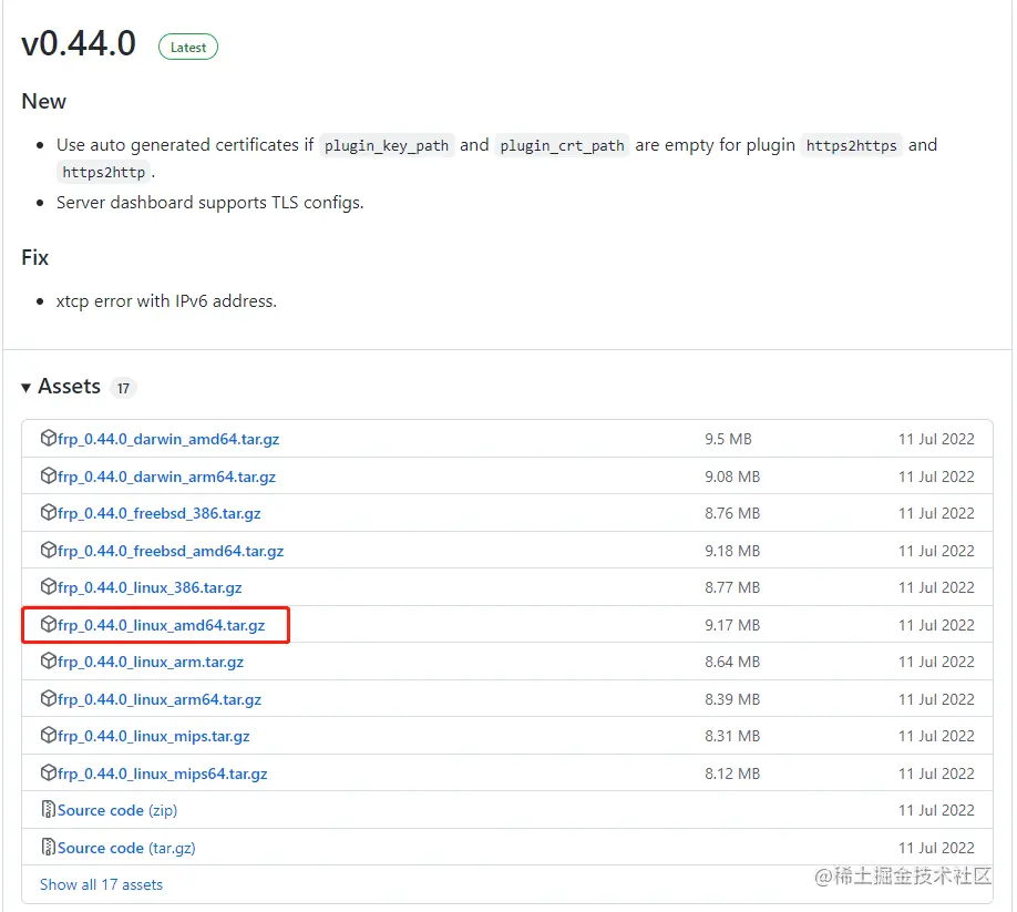 tar -xvf frp_0.44.0_linux_amd64.tar.gz # 解压缩