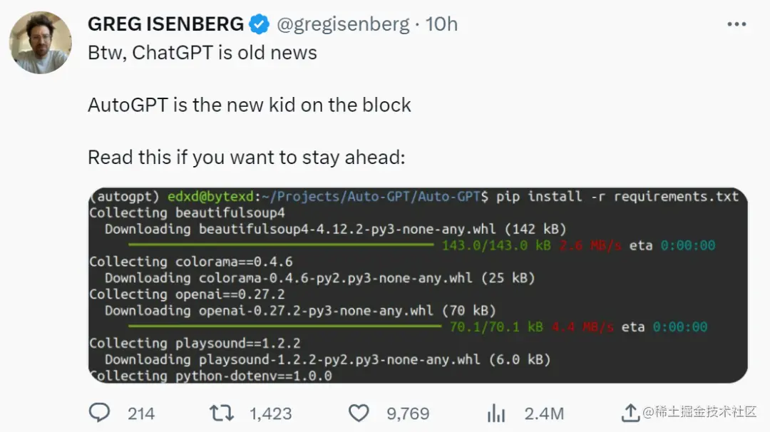 并在推特赞扬:「AutoGPT 是 prompt 工程的下一个前沿。」