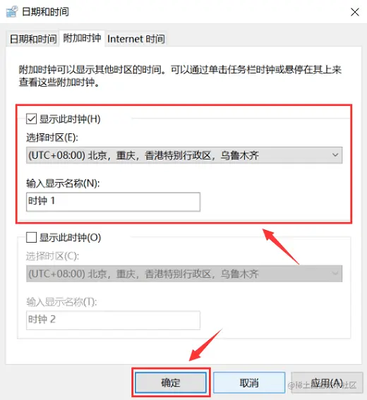 3.选择相应的时区,并勾选 【显示此时钟】 后点击确定。