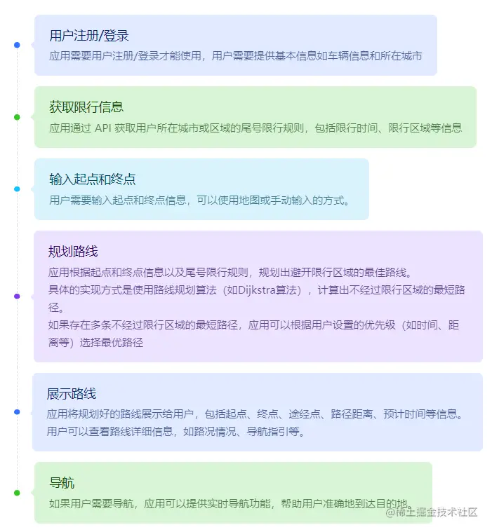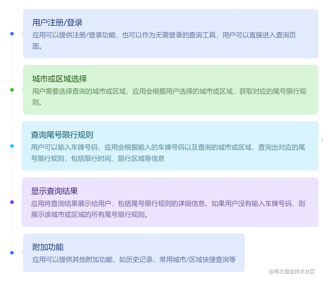 实现方法是使用该 API 获取所查询城市或区域的限行规则信息,然后将其展示给用户。