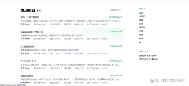 平台配有24小时的在线客服,遇到问题时可以及时和客服沟通处理,这点很加分。无论是需求方发布需求还是程序员寻找项目,都可以在这里一站式地搞定,并通过平台快速对接,完成接单项目,双方都不用担心携款跑路的问题。