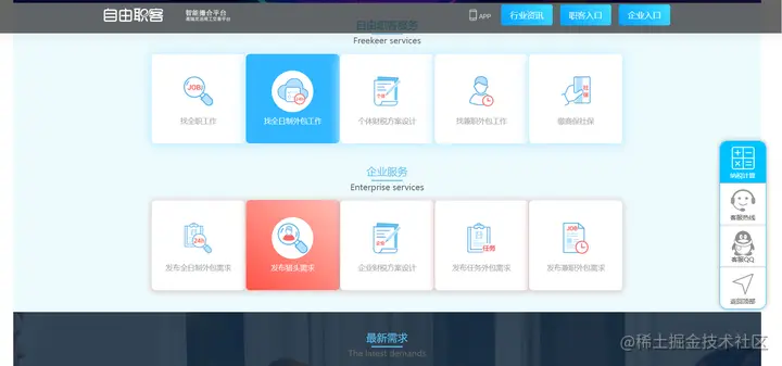 一个拥有丰富项目资源的平台,除了全日制外包工作和兼职外包工作,这里同样可以寻找全职工作,还有个体财税方案设计,算是一个比较综合性的平台。