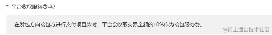值得注意的是,在项目完成并支付项目款时,平台将收取**10%**的服务费。