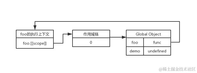 1.foo函数定义,形成foo函数的作用域链,作用域链的第一位为全局执行上下文