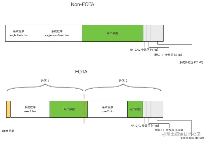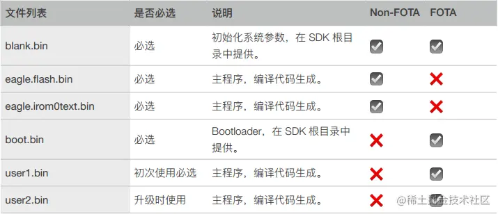 支持 FOTA 的固件无需下载 user2.bin,用户可以从云端服务器升级固件。