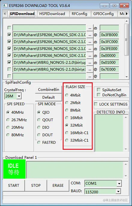 根据芯片实际的内存大小来选择上面的 FLASH SIZE。