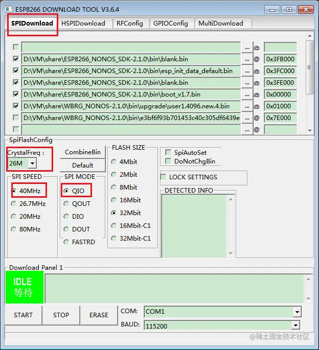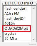 烧写时,右边的 DETECTED INFO 会显示芯片实际的信息。