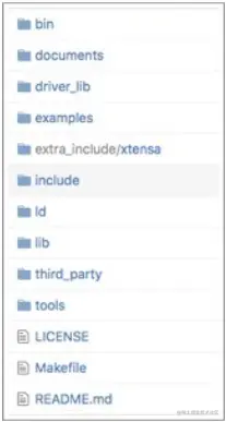 • third_party:乐鑫开放源代码的第三方库,当前包含 freeRTOS、JSON、lwIP、mbedTLS、 noPoll、OpenSSL、SPIFFS 和 SSL。