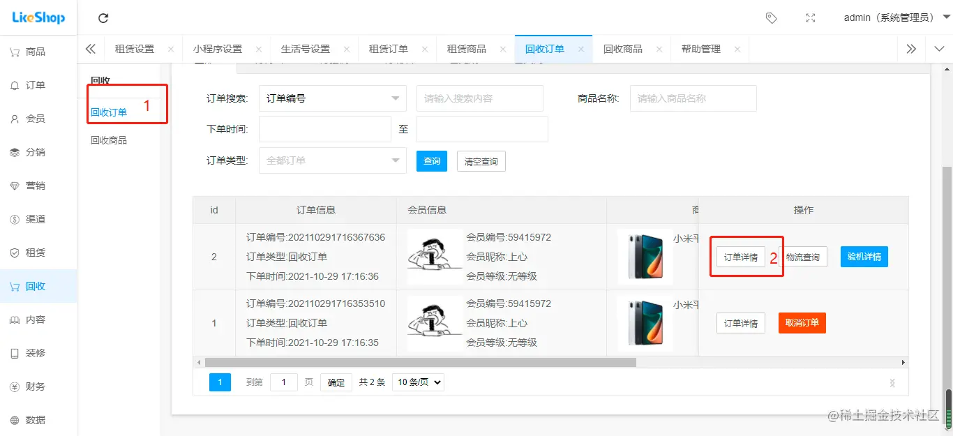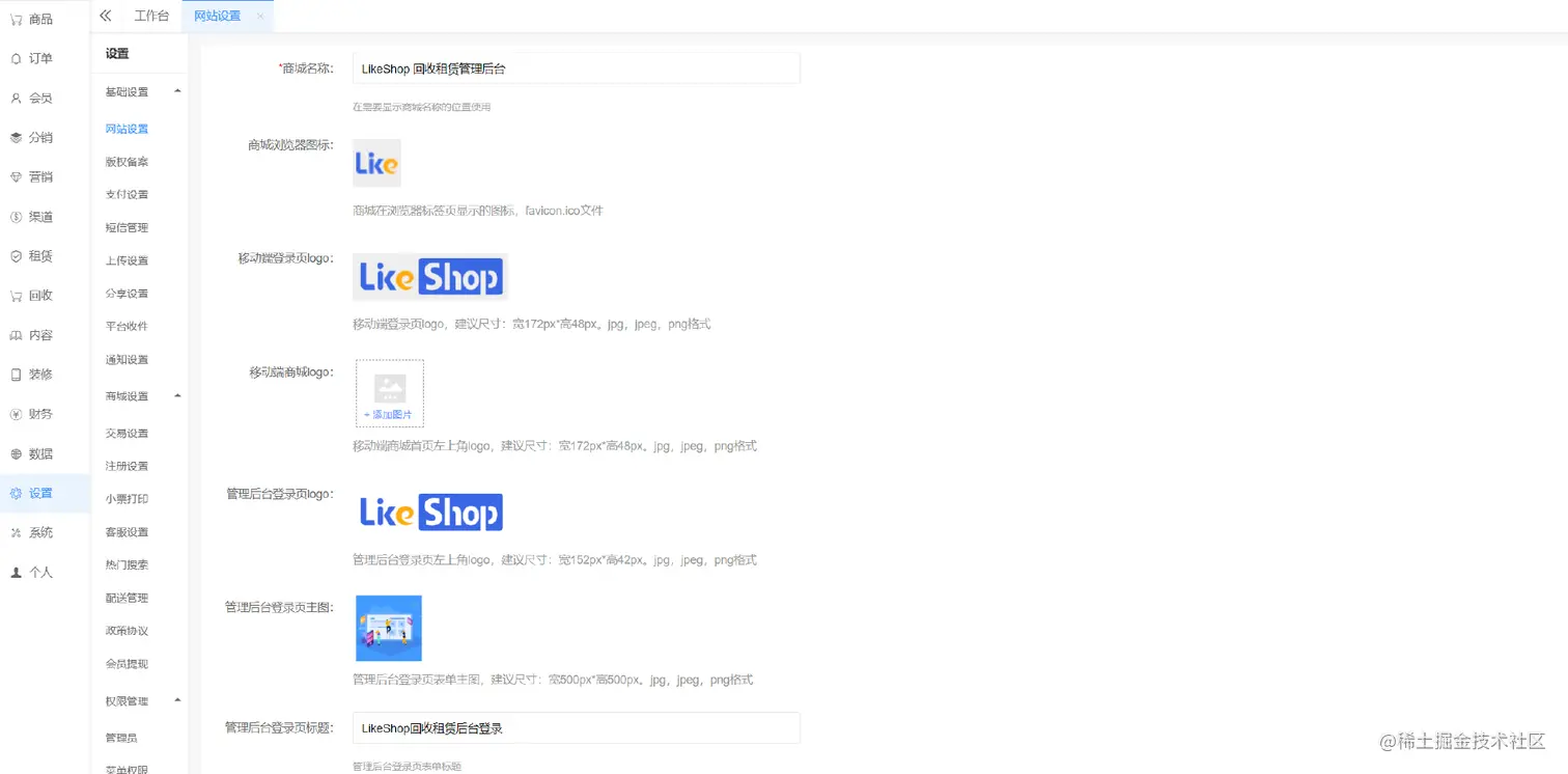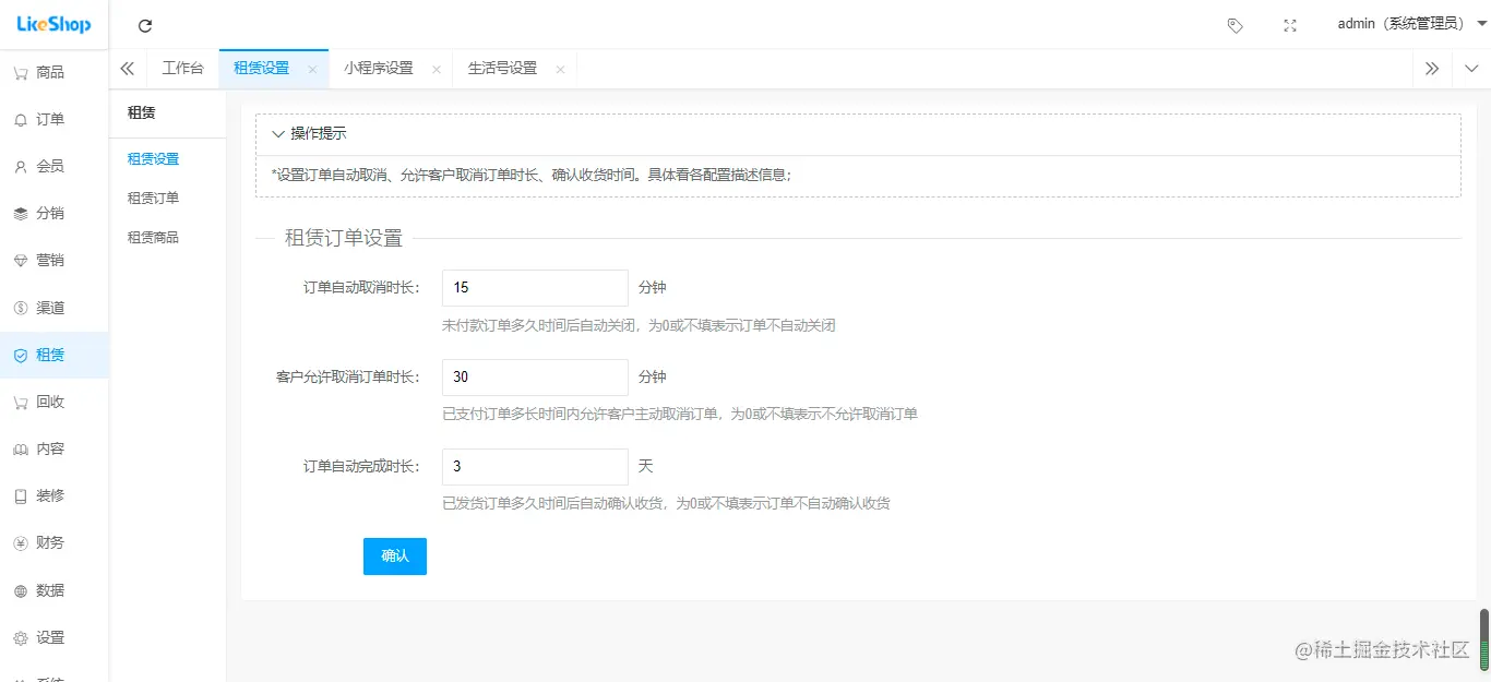 租赁设置、租赁订单、租赁商品