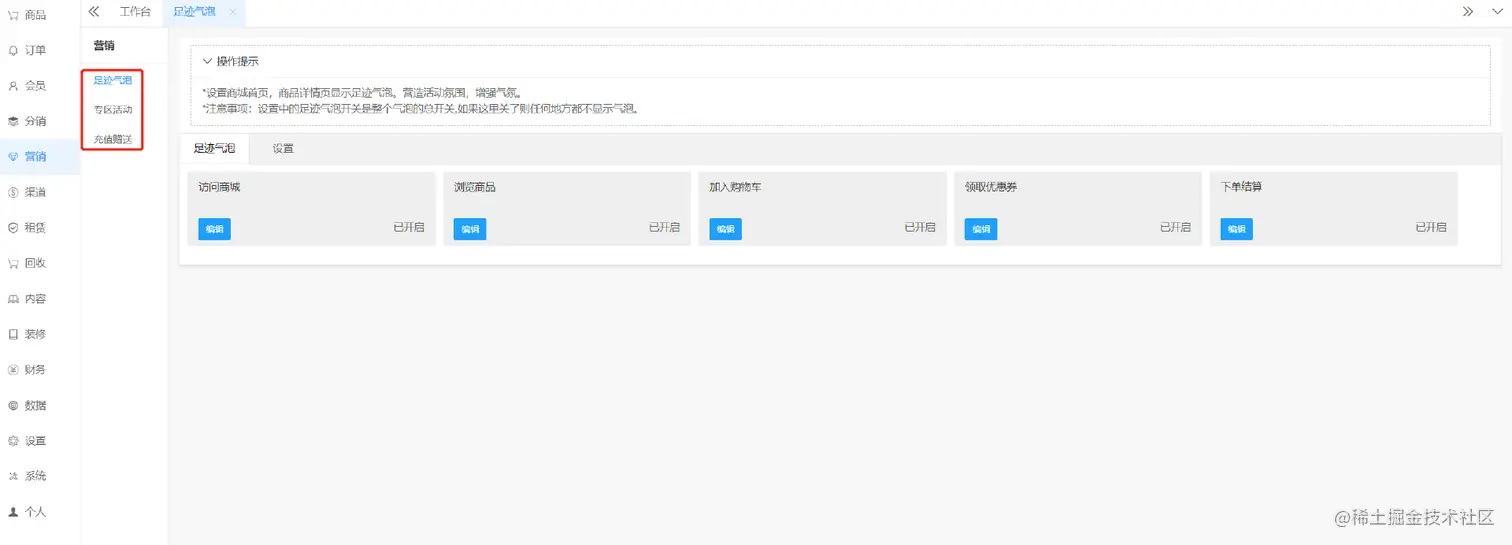 足迹气泡、专区活动、充值管理