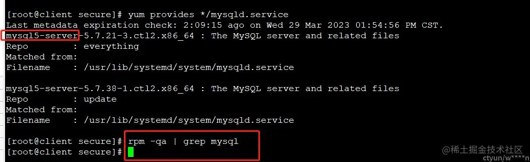 12. yum provides */文件或命令:文件或者命令属于哪个包提供,即使未安装该包也能查询。如下图显示未安装mysql但可以查询到mysqld.service是由该包提供