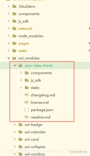 在uniapp中使用uCharts OVO 2023-04-27 134 阅读1分钟 一、导入uCharts插件 网址:ext.dcloud.net.cn/plugin?id=2… 二、导入之后会发现目录发生了变化,这就是导入的图表组件及其配置 三、在uCharts官网复制使用即可 网址:www.ucharts.cn/v2/#/demo/i…