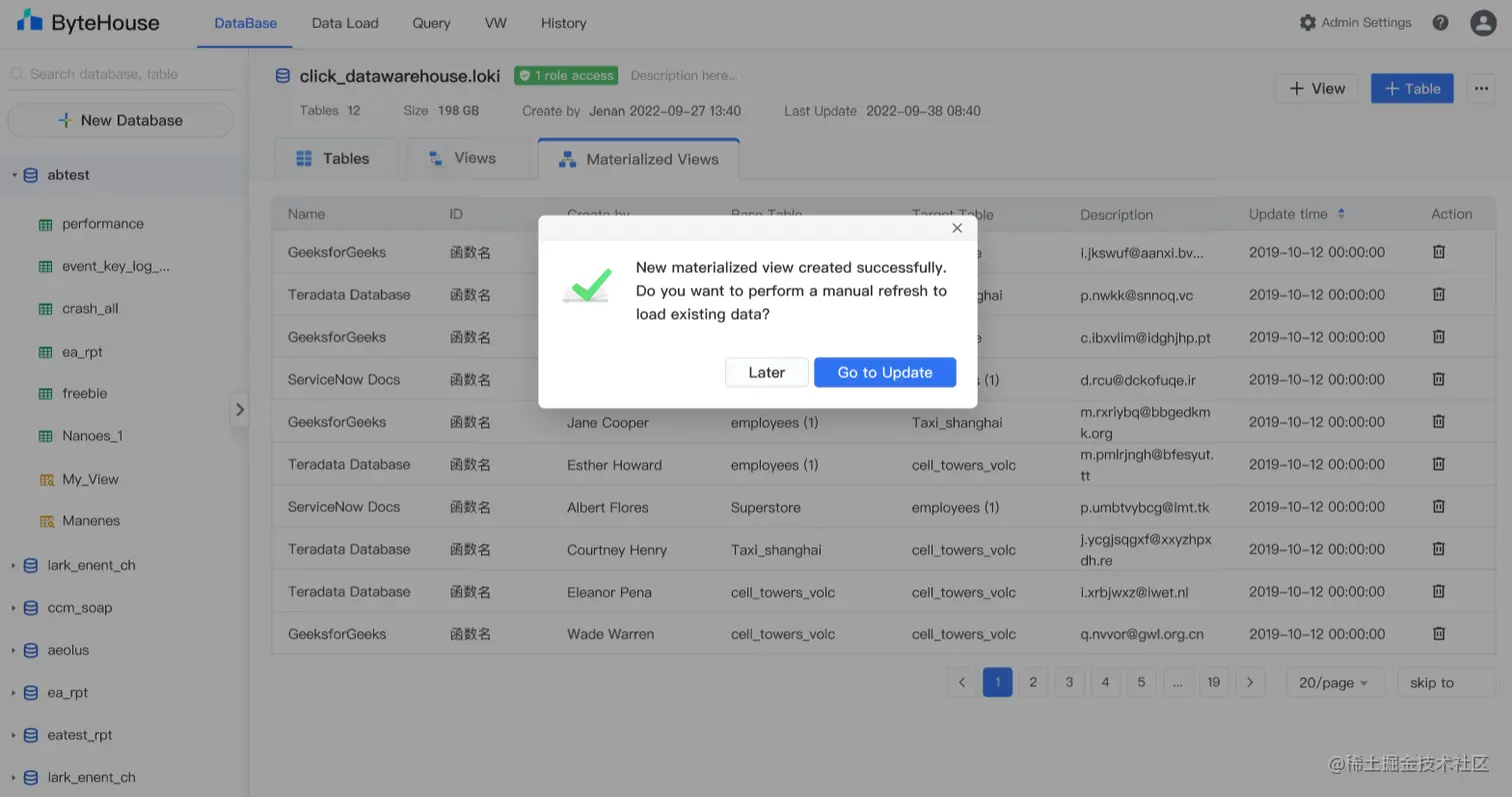 下面简单介绍如何快速入门,使用 ByteHouse 物化视图功能: