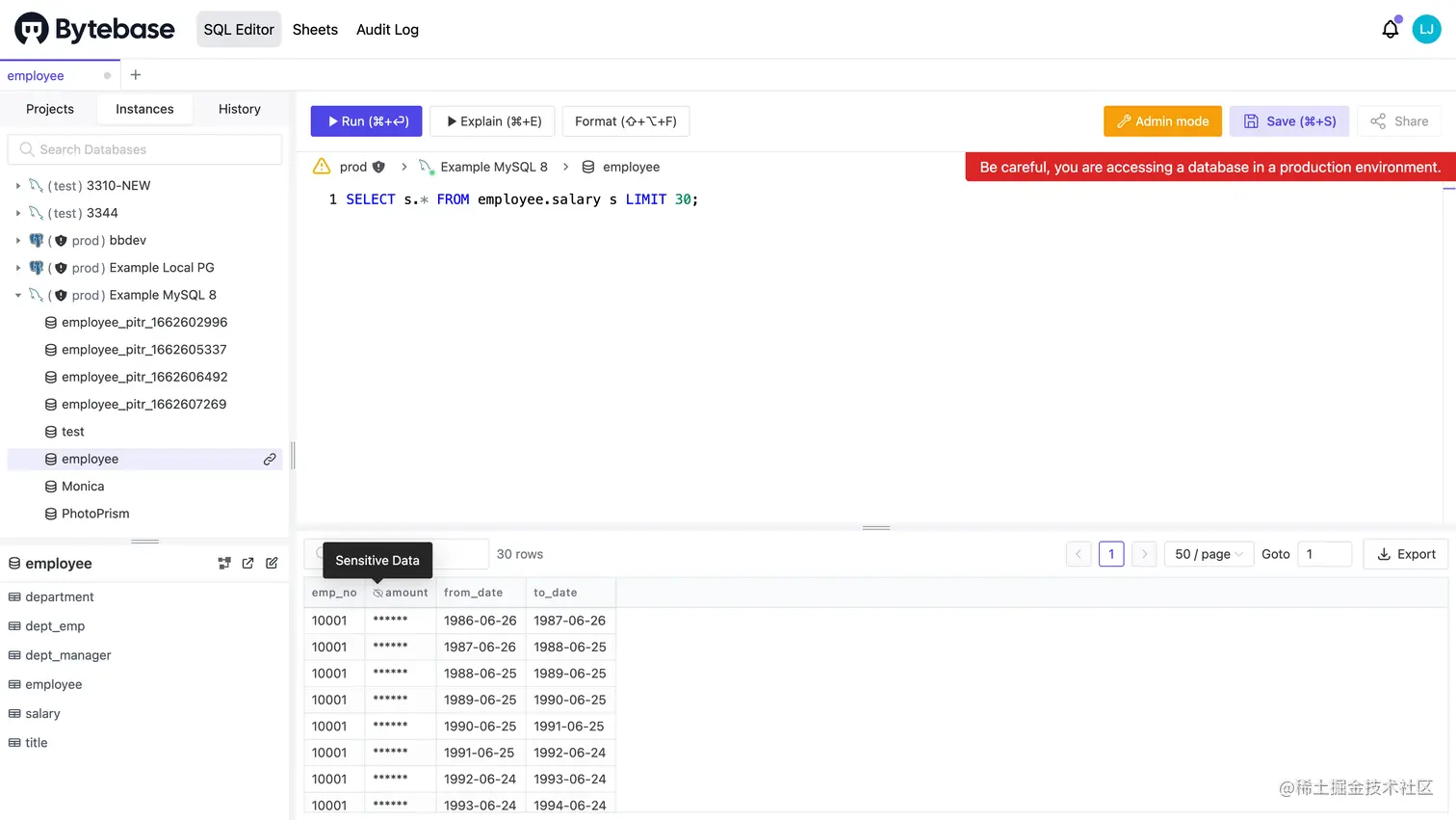 Bytebase:基于 Web 的全图形界面,可以在任意电脑打开,同时提供 API 接口、Terraform provider、命令行等多种模式应对不同研发管理流程。
