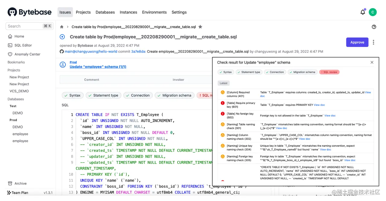 Bytebase:以 DevOps 理念打造,面向开发者与 DBA 的一站式数据库 CI/CD 工具,提供了围绕数据库变更管理与安全查询的一系列专业能力,并实现了与上下游研发工具预集成。