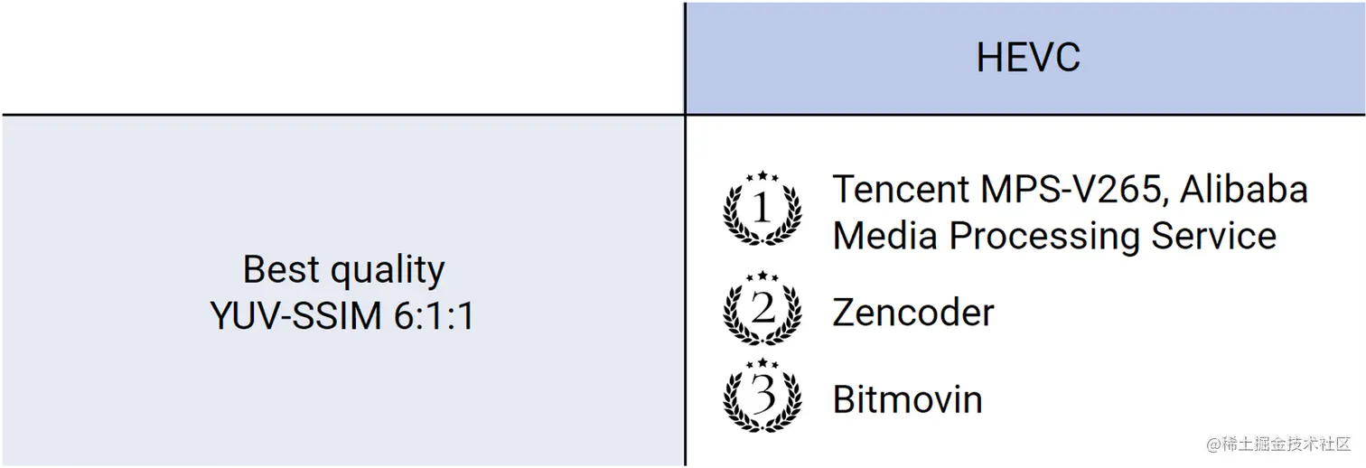 以HEVC 1080P,YUV(6:1:1)SSIM metric子赛道为图例