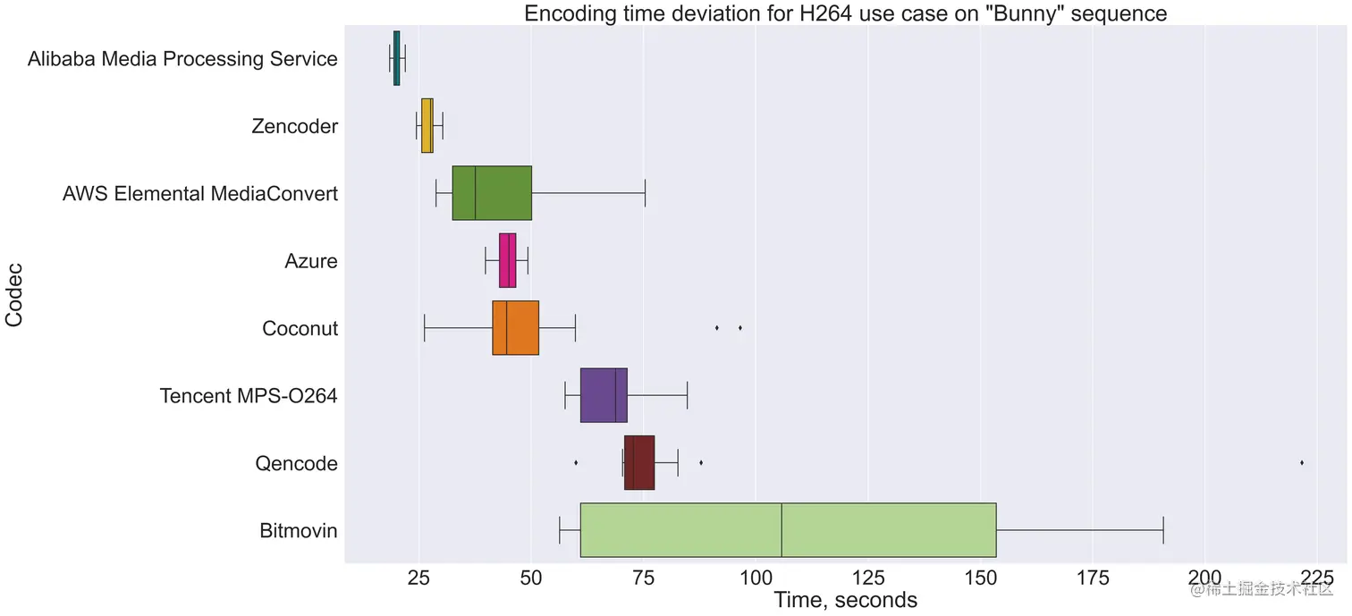 值得一提的是,如下图,MSU官网首页结果显示:阿里MPS转码速度最快,转码所需时长波动最小,这背后意味着阿里云视频云能够提供更加稳定可靠、实时满足商用要求的相关转码服务,而这也是云厂商技术实力和综合能力的体现。