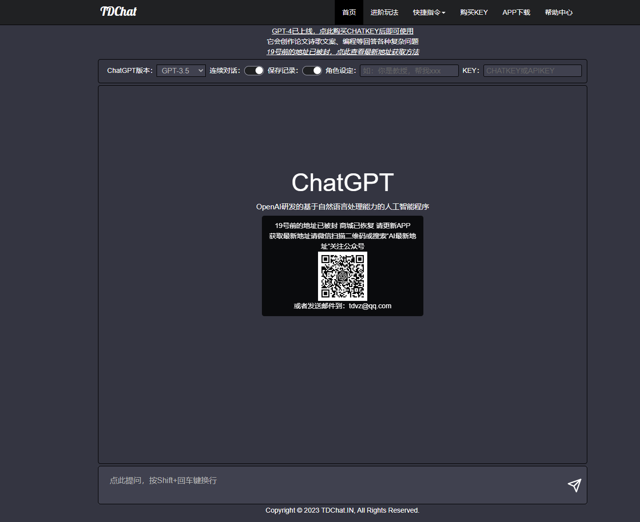 国人做的一个Wrap网站,每天有3次免费使用GPT-4的机会。网址:www.tdchat.vip/