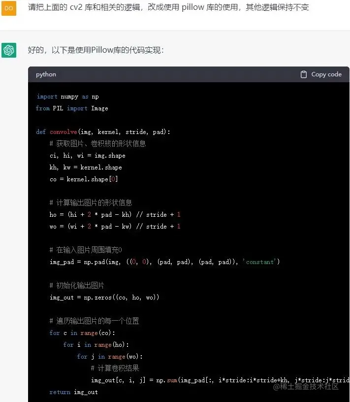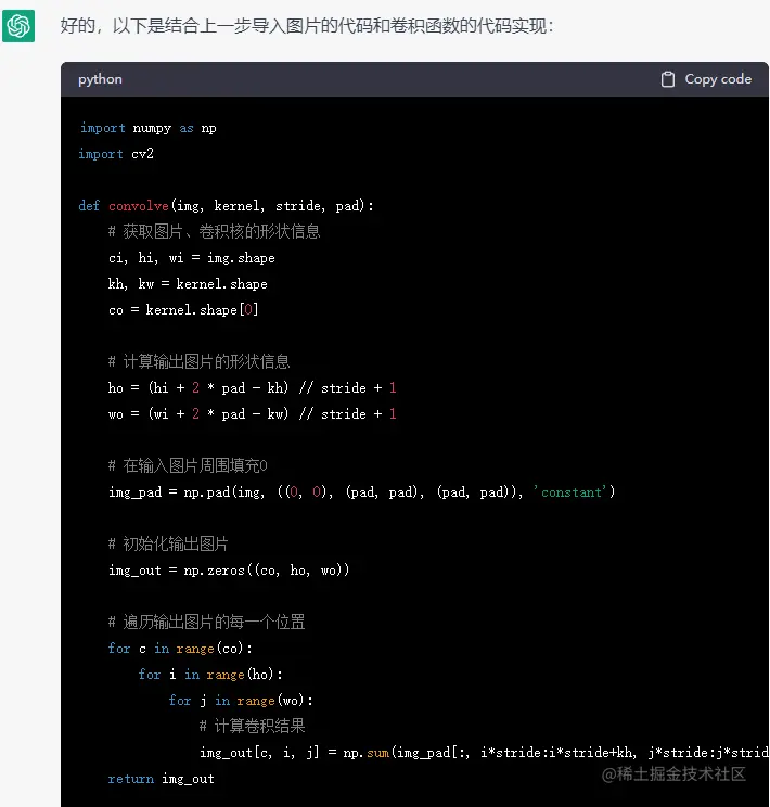 下面是让chatGPT按照我的要求,写一个加载图片并送给卷积进行运算的操作。