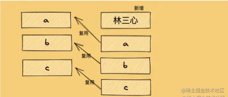 当视图要更新的时候,通过对比数据变动前后的状态,将更新前的虚拟和新的虚拟DOM进行对比,计算出视图哪些地方需要更新,只更新需要更新的地方,其他的不需要的不用关心,这样就减少了操作DOM.