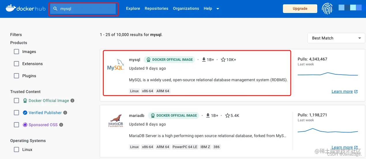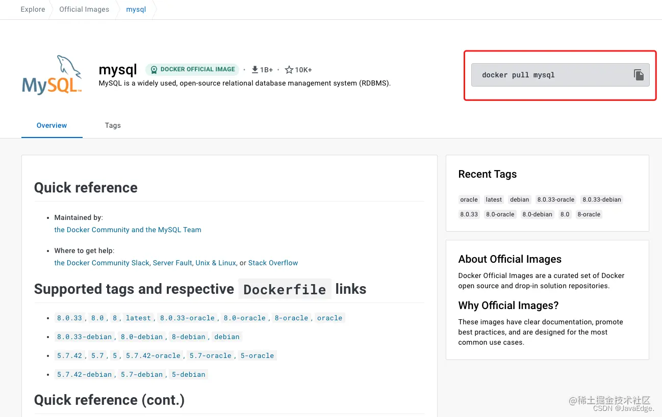 直接执行docker pull mysql,会下载最新版本的 MySQL。