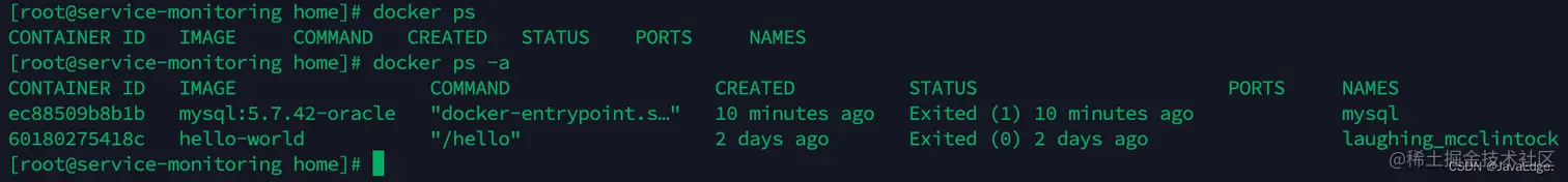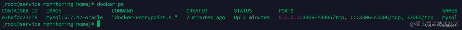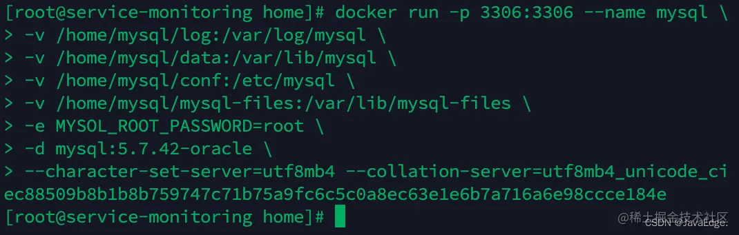 [root@service-monitoring home]# docker run -p 3306:3306 --name mysql \