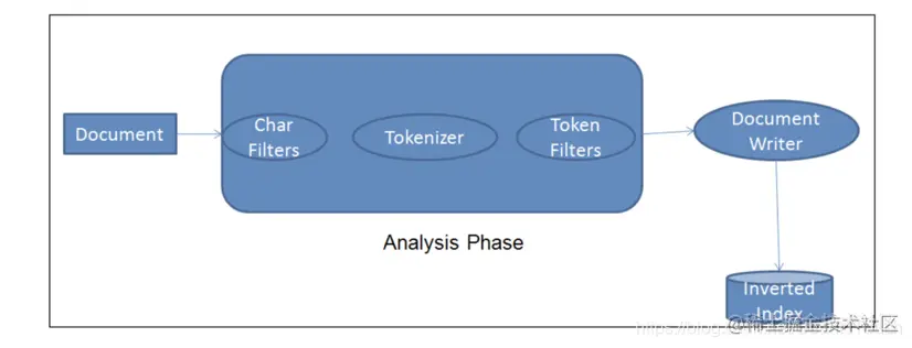 - 索引文档。 每个文档字段都将使用其相应的分析器进行处理,并分解为分词以方便搜索。