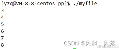 运行可执行程序,发现 打印结果为 3 4 5 6 7 8 因为 标准输入、标准输出、标准错误分别占用了0 、1、2,所以只能从3开始