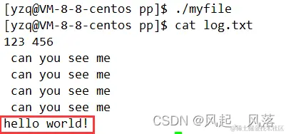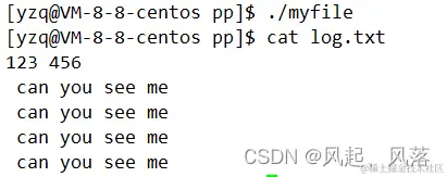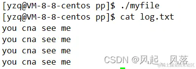 此时运行可执行程序没有显示出you can see me,打开新文件发现本来应该打印到显示器的内容,打印到log.txt中了